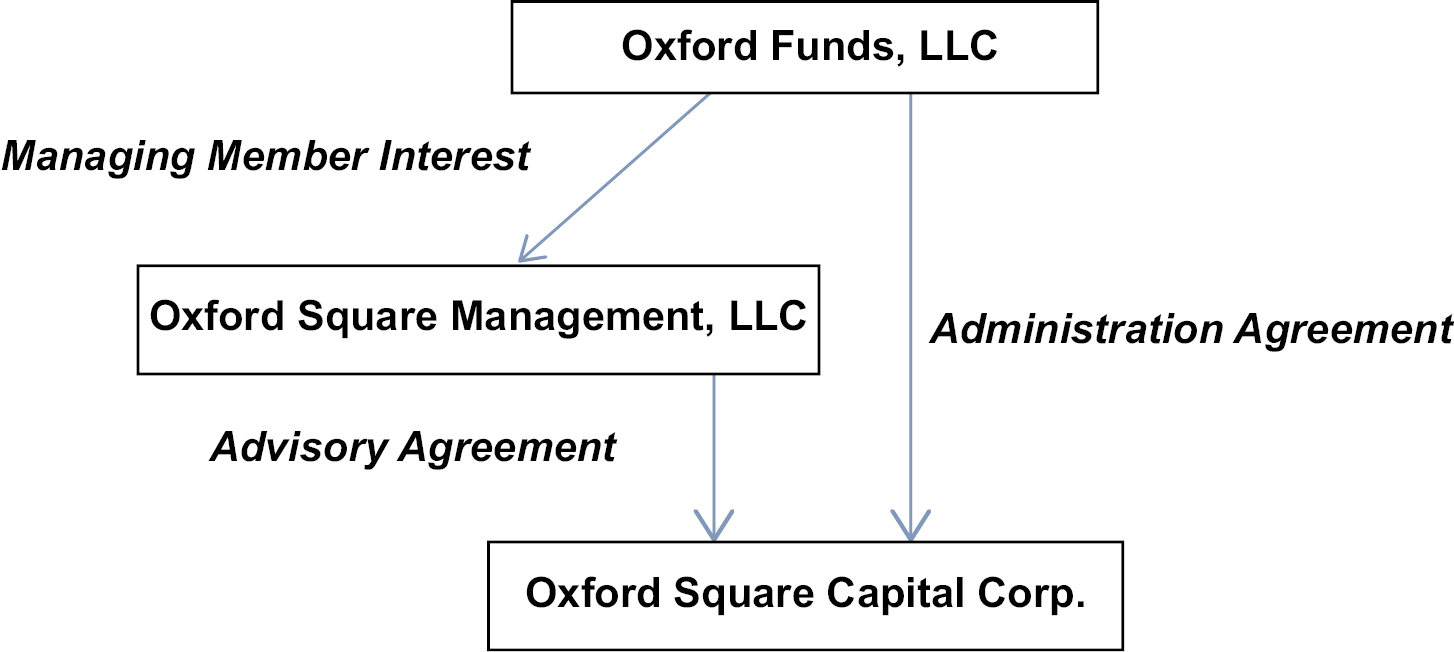 Oxford Square Capital Corp. (“OXSQ,” “Company,” “we,” “us,” or “our”) is a closed-end, non-diversified management investment company that has elected to be regulated as a business development company (“BDC”) under the Investment Company Act of 1940, as amended (the “1940 Act”). We have elected to be treated for U.S. federal income tax purposes as a regulated investment company (“RIC”) under Subchapter M of the Internal Revenue Code of 1986, as amended (the “Code”) beginning with our 2003 taxable year. Our investment objective is to maximize our portfolio’s total return. Our primary current focus is to seek an attractive risk-adjusted total return by investing primarily in corporate debt securities and, to a lesser extent collateralized loan obligation (“CLO”) structured finance investments that own corporate debt securities. CLO investments may also include warehouse facilities, which are early-stage CLO vehicles intended to aggregate loans that may be used to form the basis of a traditional CLO vehicle. We may also invest in publicly traded debt and/or equity securities. As a BDC, we may not acquire any asset other than “qualifying assets” unless, at the time we make the acquisition, the value of our qualifying assets represents at least 70% of the value of our total assets.